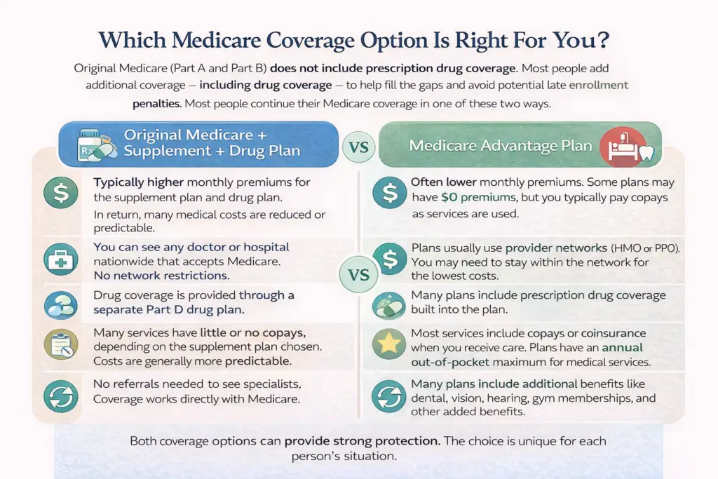 Another common Medicare mistake is enrolling in coverage without fully comparing how the different options work. Medicare offers more than one way to receive your benefits, and each option can affect your monthly costs, doctor access, and prescription coverage.